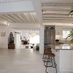 يوجد أيضًا منطقة المطبخ الصغير المجهز مع الغلاية الكهربائية والبرَّاد وأدوات المطبخ في المبنى. يقع مطار ميكونوس على بعد 10 دقيقة بالسيارة من مكان الإقامة. يمكن للضيوف الوصول إلى بركة السباحة الخصوصية والشواء، بالإضافة إلى الشرفة مع إطلالات على البحر.